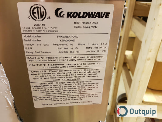 CONDITIONER, AIR KOOLETTE KOLDWAVE MODEL #5WK07BEA 115 VAC WATER COOLED 7000 BTU
